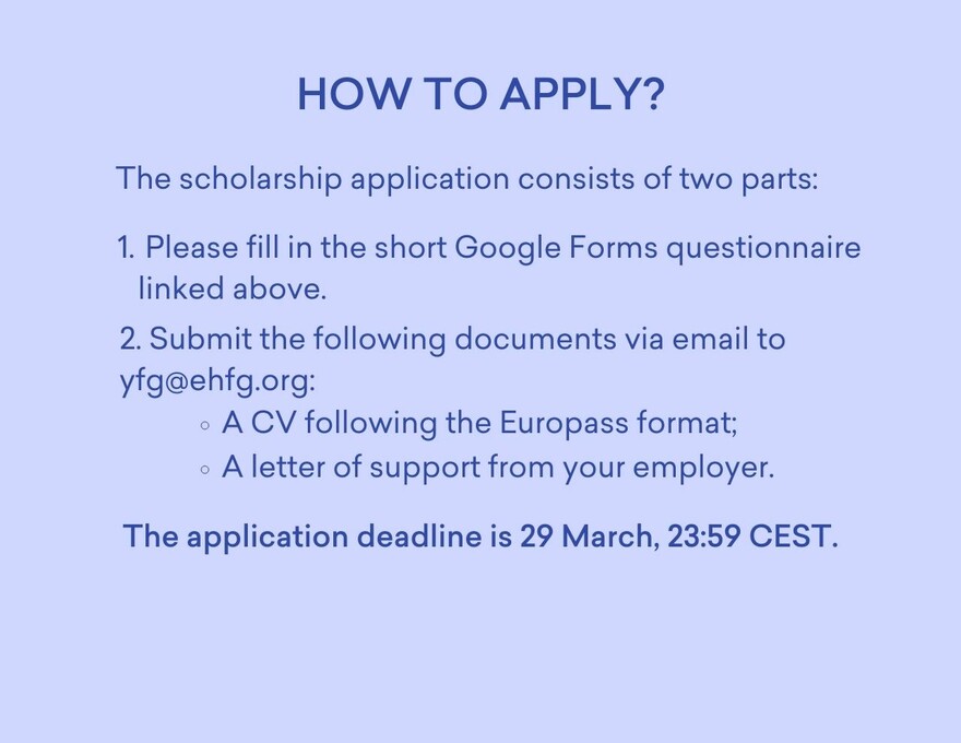 Please ensure your completed application is submitted by 23:59 CEST on 29 March 2026.